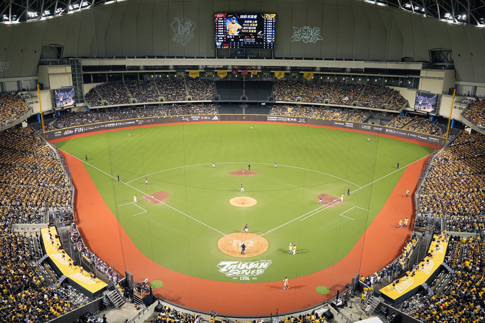 中職2025年台灣大賽首戰今在台北大巨蛋開打,賽前門票就完售,主場中信兄弟宣布滿場,這是中職台灣大賽史上第64場滿場、大巨蛋自去年開放中職進駐比賽後,在台灣大賽第2場4萬人賽事。 今年台灣大賽前3戰都在大巨蛋進行,前2戰兄弟主場確定都是4萬人滿場,第3戰