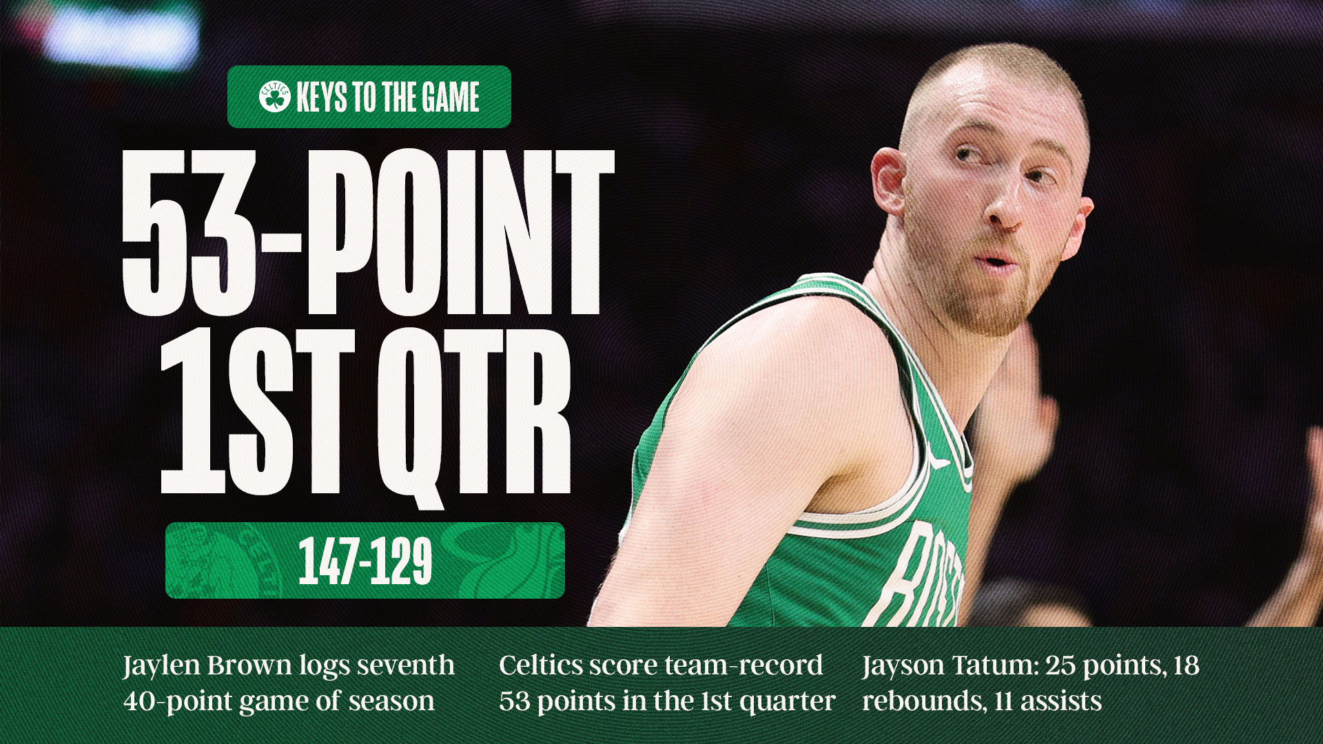 NBA》綠衫軍隊史首見首節狂轟53分 Jayson Tatum達到Larry Bird成就