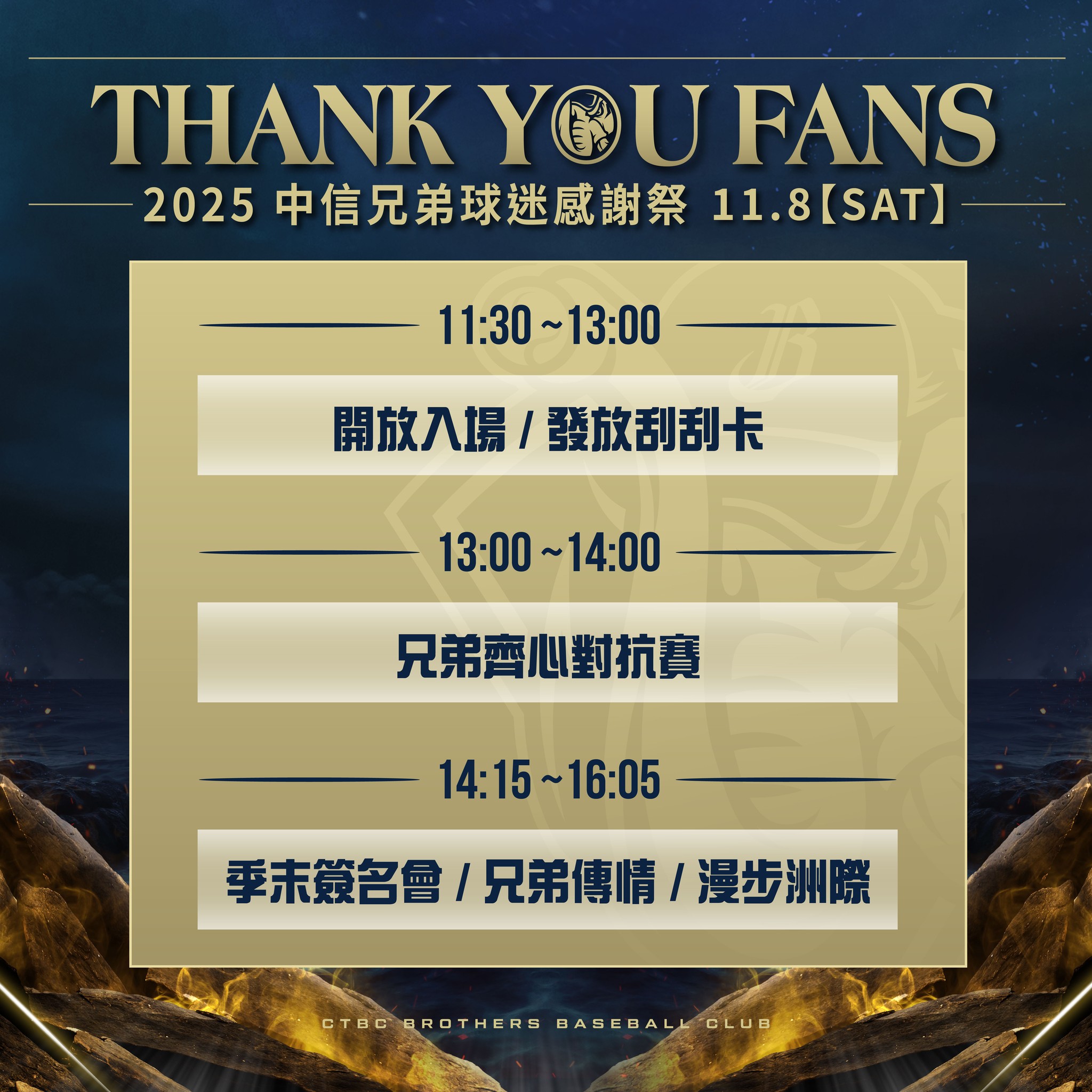結束台灣大賽,中信兄弟短暫休息後,將在下週六(8日)於台中洲際主場舉行年度球迷感謝祭。