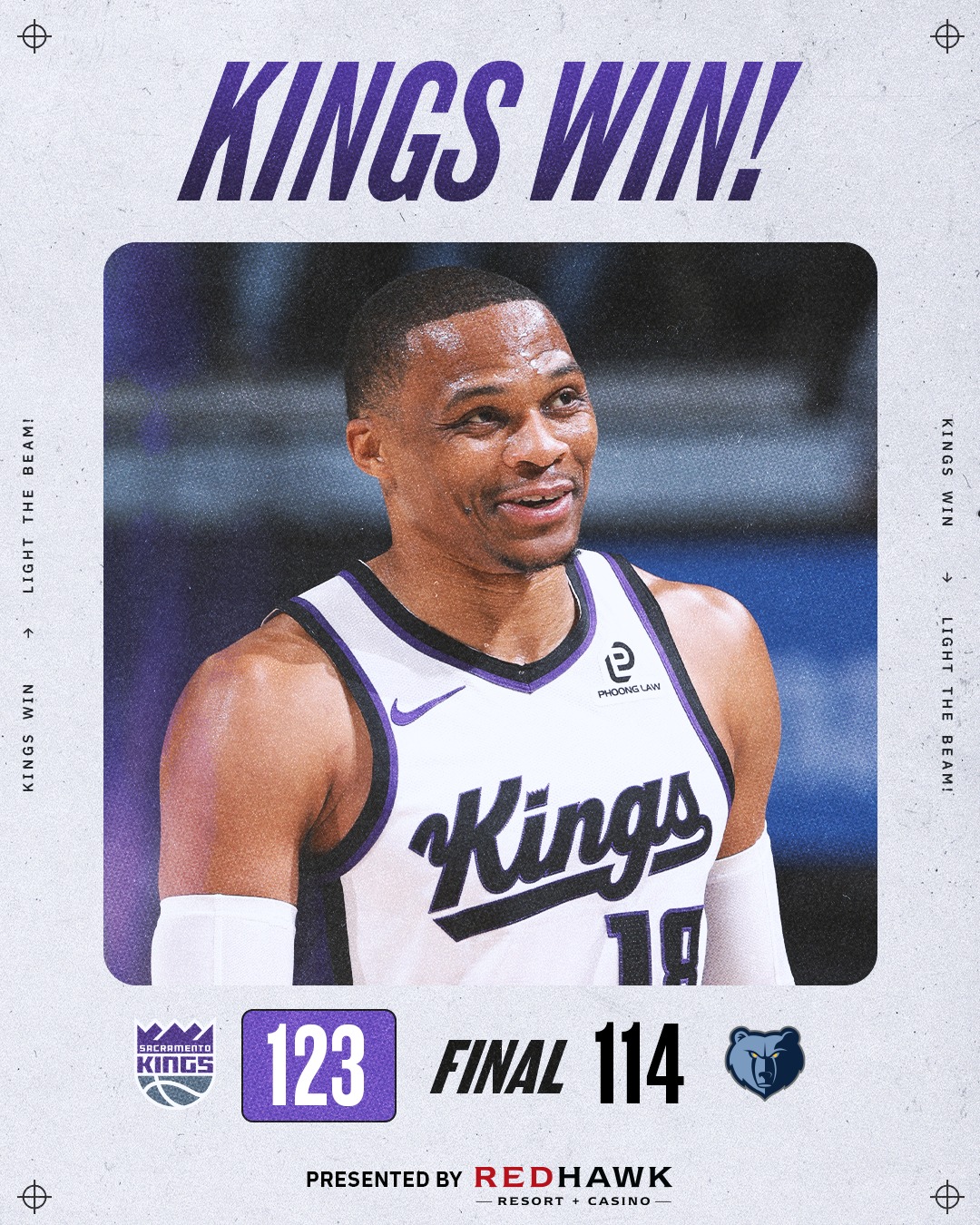 在Russell Westbrook攻下25分,Precious Achiuwa貢獻22分與12籃板的帶領下,沙加緬度國王今天以123比114擊敗曼非斯灰熊,終於結束隊史最長的16連敗。