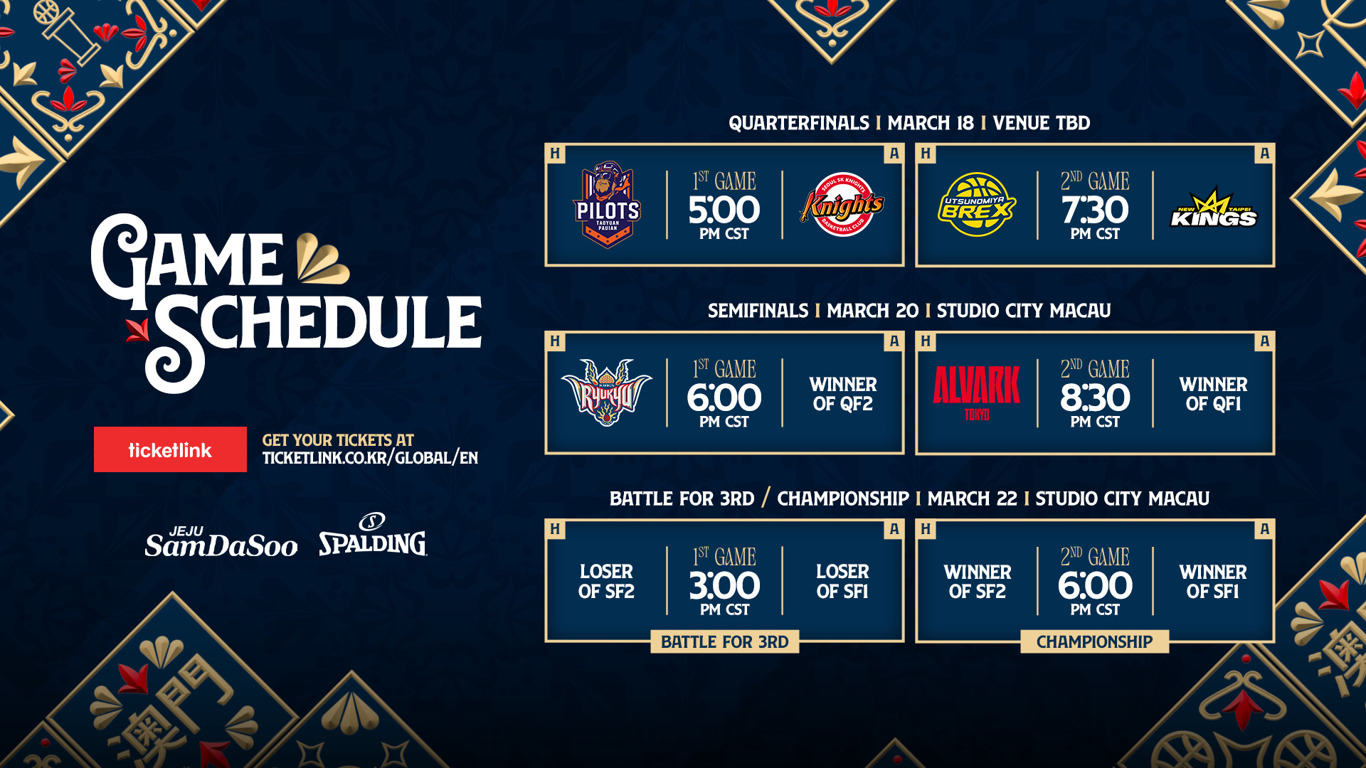 東亞超級聯賽今天表示,季後賽門票將於26日由獨家票務合作夥伴Ticketlink正式發售。 本屆季後賽增至六支亞洲頂級球隊參賽,展開為期六場的高水準對決。