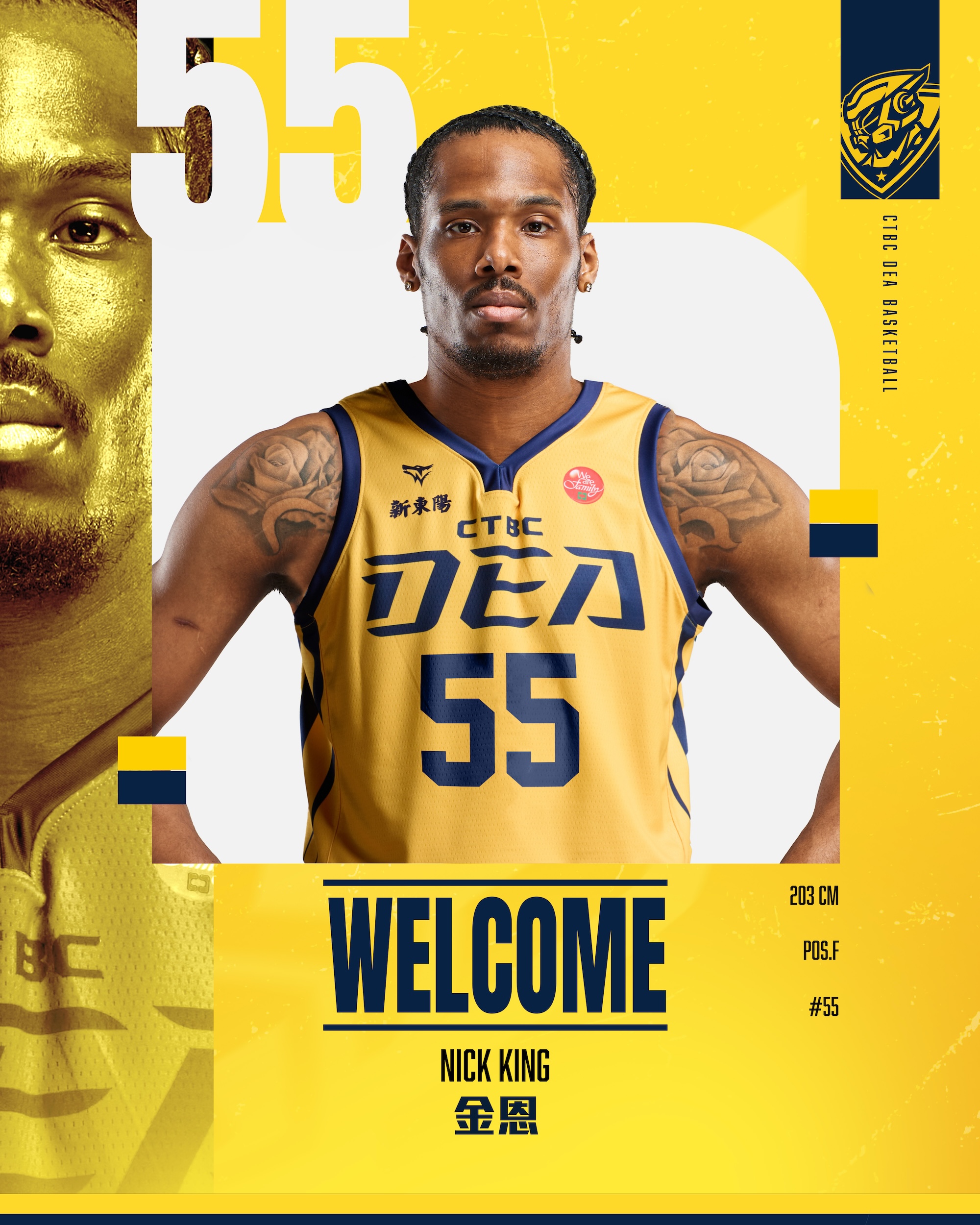 新北中信特攻籃球隊今天宣佈,持續因應賽季需求進行外援戰力補強,全能鋒線好手金恩」Nick King)重返特務軍團。金恩也已於今晨抵達臺灣,將再次披上55號黃衫戰袍。