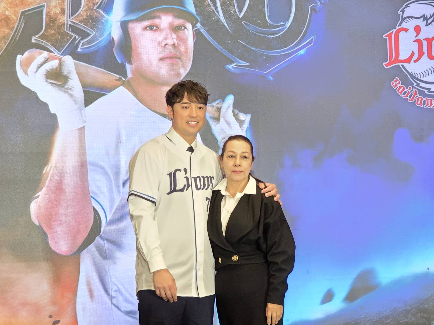 林安可今正式加盟日職西武獅,出席的來賓跟媒體非常多,他的阿根廷籍母親安采湄、已登記的太太,以及他在南英商工青棒隊時期的恩師陳献榮都親自出席。看到兒子成功旅外,安采湄止不住笑容說:「開心」。