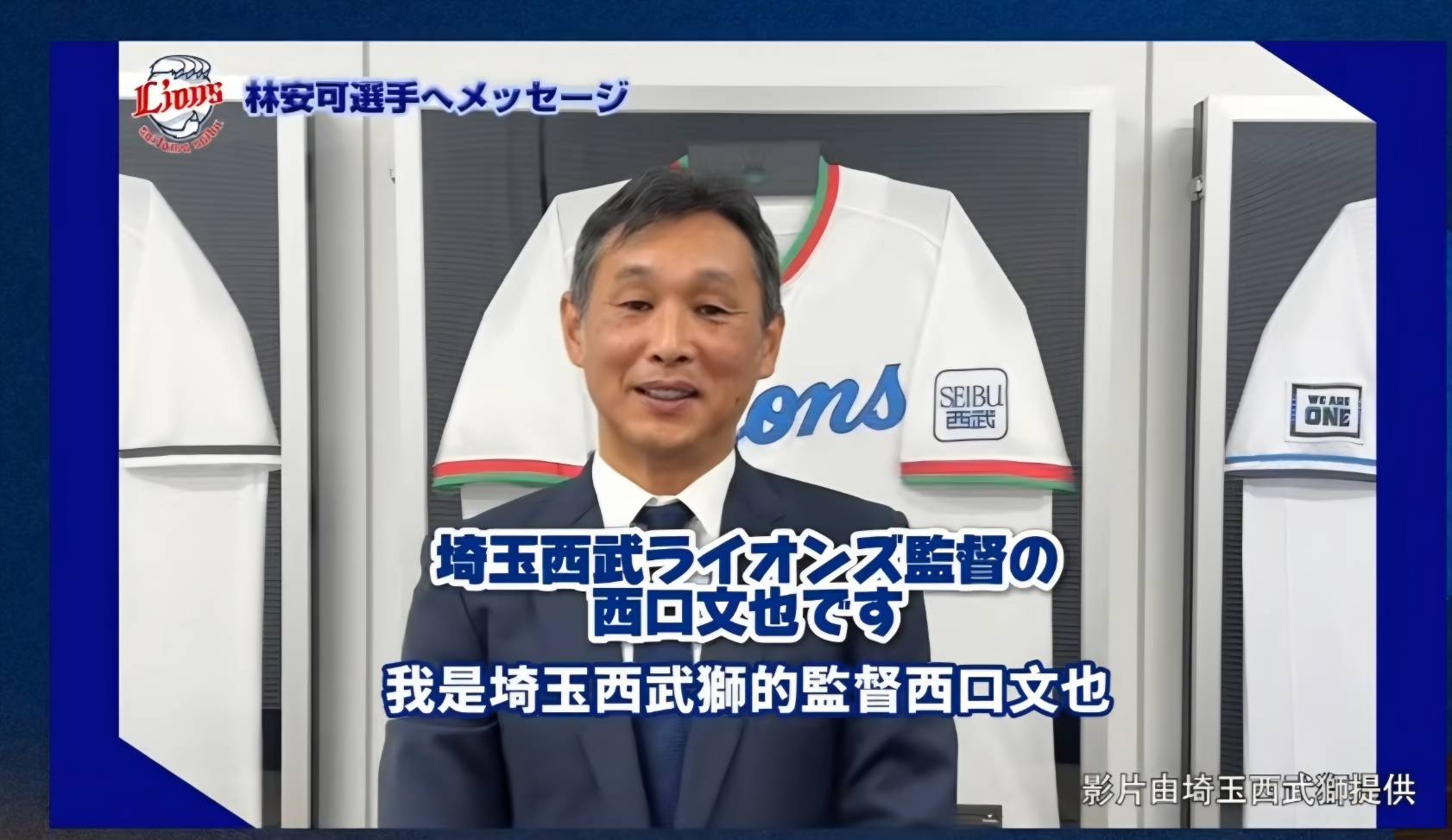 林安可正式加盟日職埼玉西武獅,監督西口文也雖然沒有來台出席加盟記者會,也透過球團錄製影片,他表示,自從到統一獅擔任客座教練後,一直有在關注林安可的表現,如今能在同一支球隊,真的很高興跟他並肩作戰,並對他充滿期待。