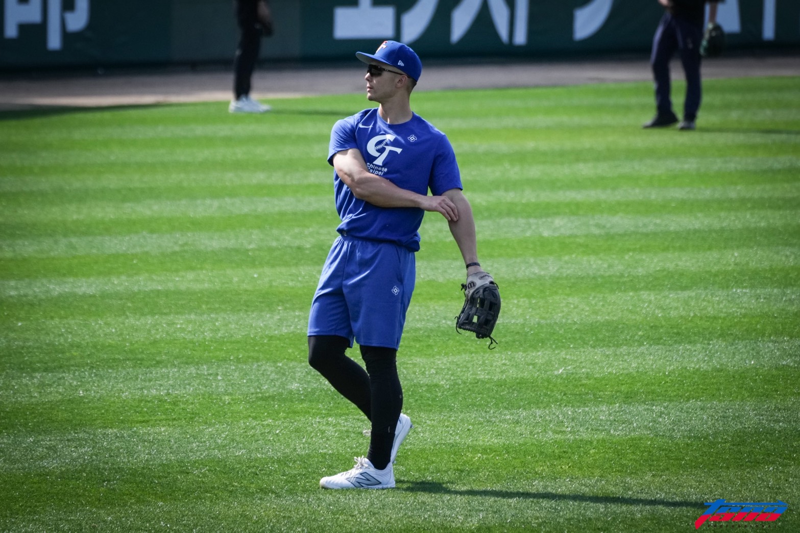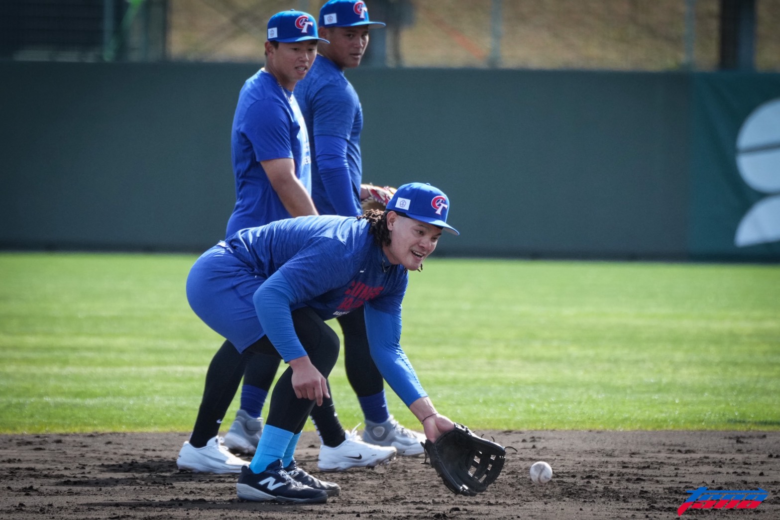 「費仔」Stuart Fairchild今來到宮崎SOKKEN球場,加入中華隊訓練,也做了打擊跟守備練習。教練高國輝看他,認為他是林立跟林哲瑄的綜合體,「守備是真的很好。」