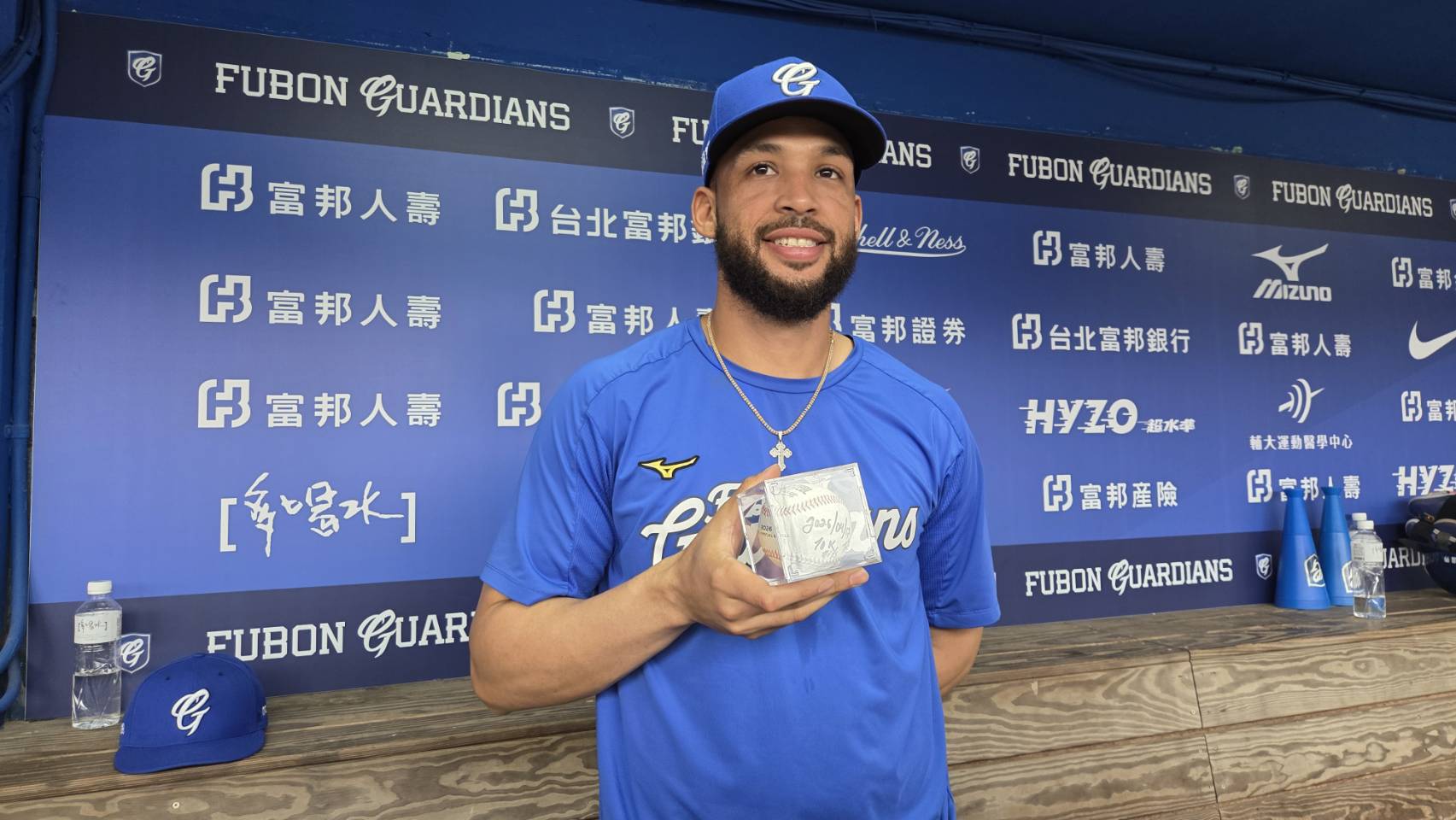 富邦悍將洋砲邦力多在昨天對統一獅,第2局第1個打席敲出一壘安打,是隊史第1萬支安打,之後在這顆球上簽名,不過大家比較關注是他出賽11場,首轟仍未出