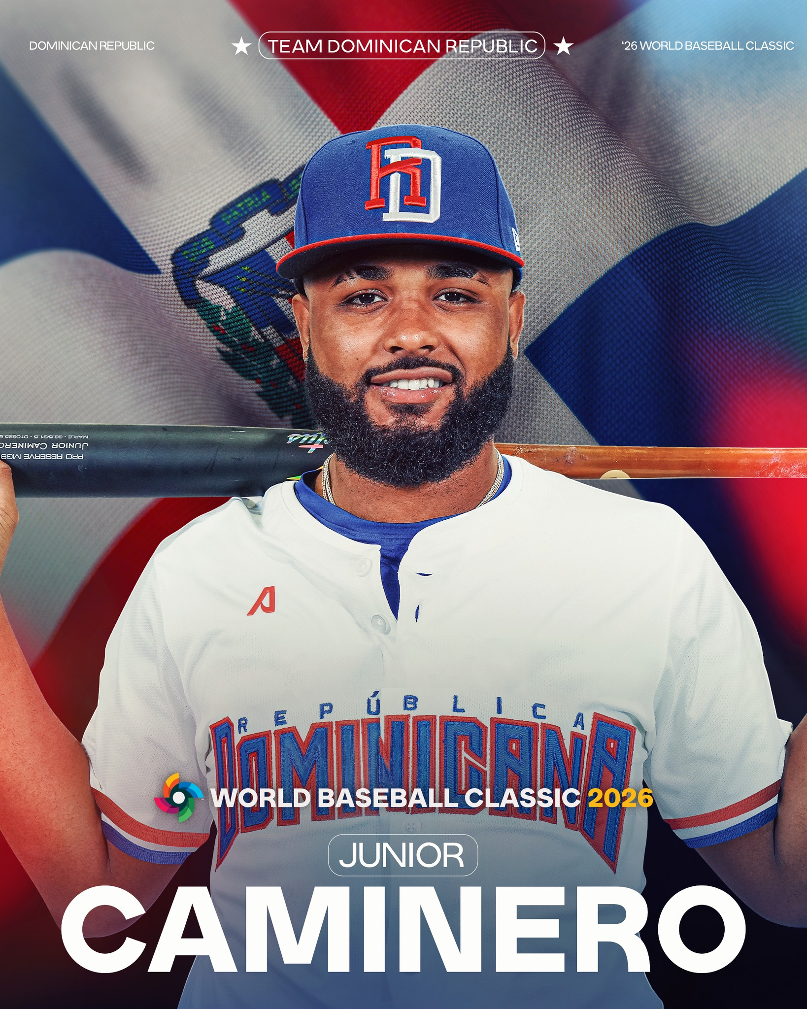 多明尼加隊總教練Albert Pujol宣布。坦帕灣光芒隊三壘手Junior Caminero將代表家鄉多明尼加出戰 2026 年WBC經典賽。