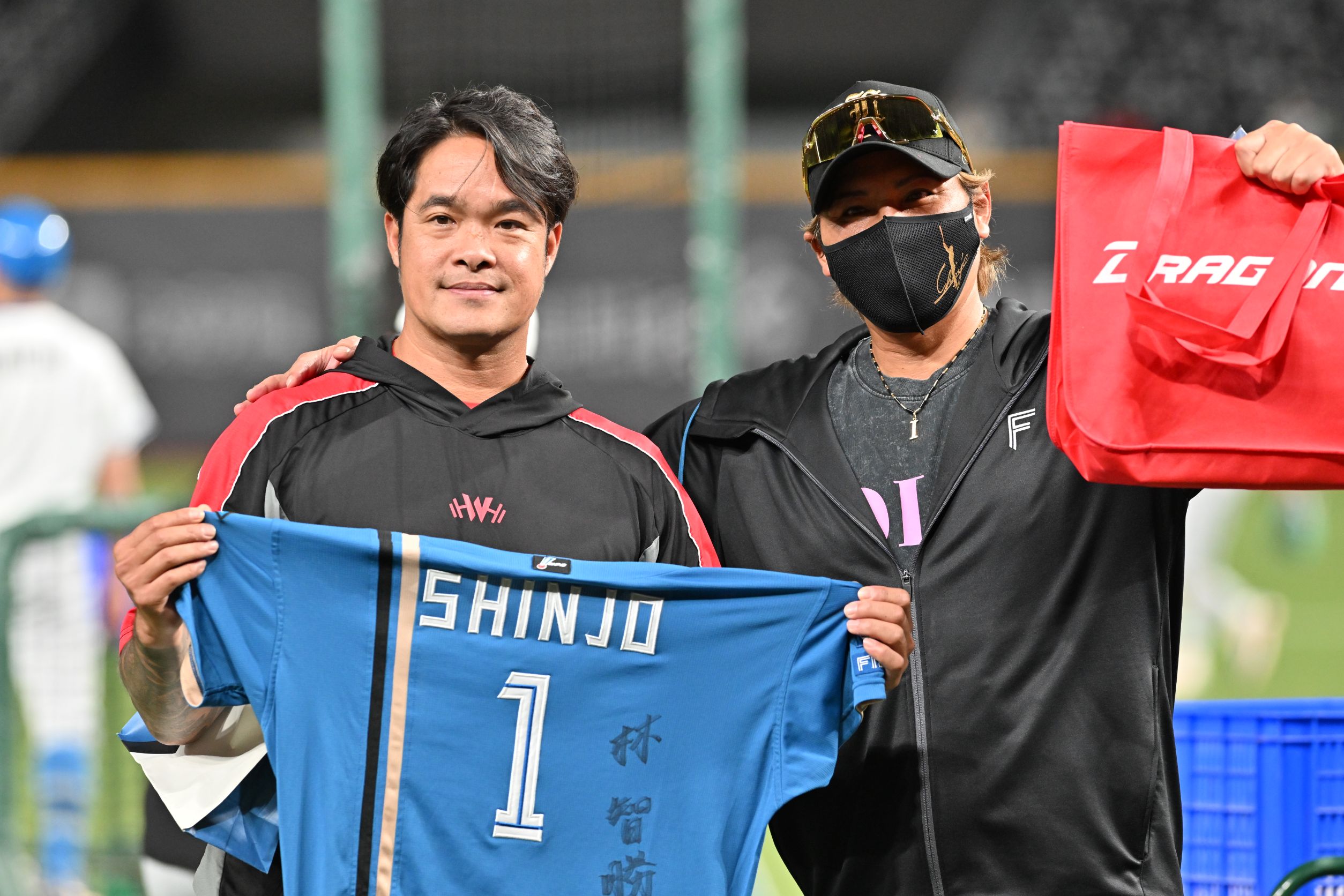 台日交流賽今天進行最後一天賽事,由味全龍出戰日職日本火腿鬥士隊,味全龍隊打擊教練林智勝賽前跟新庄剛志監督合影,還獲贈球衣,引發日本媒體關注,紛紛問「他是誰?」