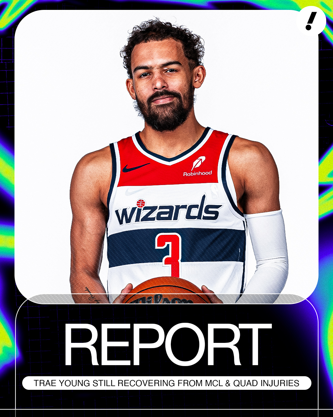Trae Young上週被交易,不過ESPN今天報導,華盛頓巫師隊的新當家球星Trae Young,仍在從右腿內側副韌帶與股四頭肌傷勢中恢復,將缺席至全明星賽後重新接受評估,處理方式相當謹慎。