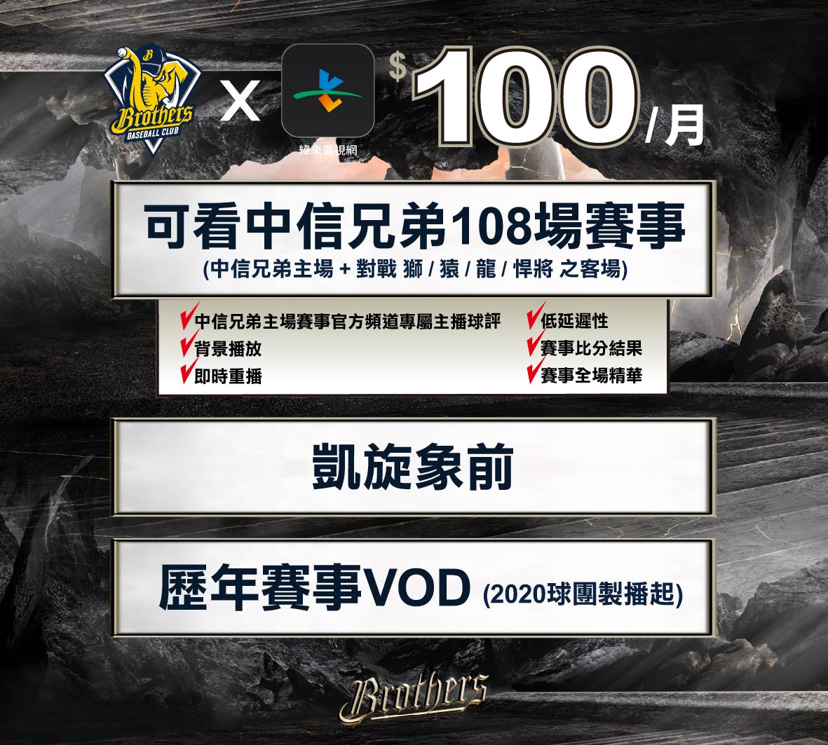 中職》中信兄弟官方頻道移至緯來運動影音平台 每月100元可掌握中信兄弟108場賽事主、客場賽事