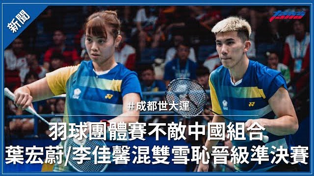 【成都世大運】團體賽不敵中國組合 葉宏蔚/李佳馨混雙雪恥晉級準決賽