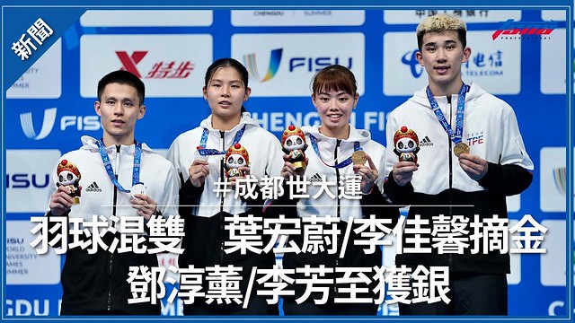 【成都世大運】羽球混雙金包銀 葉宏蔚/李佳馨摘金、鄧淳薰/李芳至獲銀